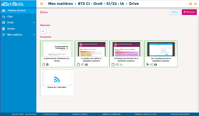 Chaque cours dispose d'un espace de partage de documents avec les élèves. Il s'appelle le "drive".