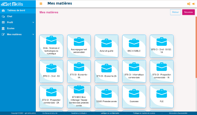 Dès l'arrivée sur votre plateforme, vous retrouvez l'ensemble de vos cours, accessibles d'un simple click.